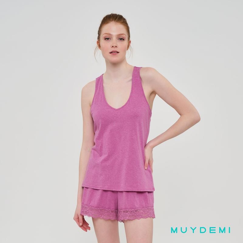 Pijama de verano de mujer, con camiseta de tirantes y pantalón corto. color rosado oscuro.